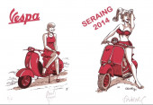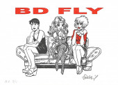 Commentaire : La "BMW Isetta". Ex-libris faisant partie de la série "voiture" en couleur. Ces ex-libris sont réalisés par différents auteurs : F. Walthéry pour les décors et les pin-up, le ou les autres auteurs pour la voiture et d'autres éléments. Ici, Stédo et Jean-Luc Delvaux. Signé par les 3 auteur.
