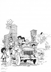 Commentaire : Fait partie des 14 illustrations contenues dans le portfolio. François Walthéry - Diamond Reo M35 - L'enfer de Xique-Xique.