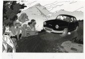 Commentaire : Fait partie des 14 illustrations contenues dans le portfolio. Alain Audry - Peugeot 202 - Libéllule s'évade.