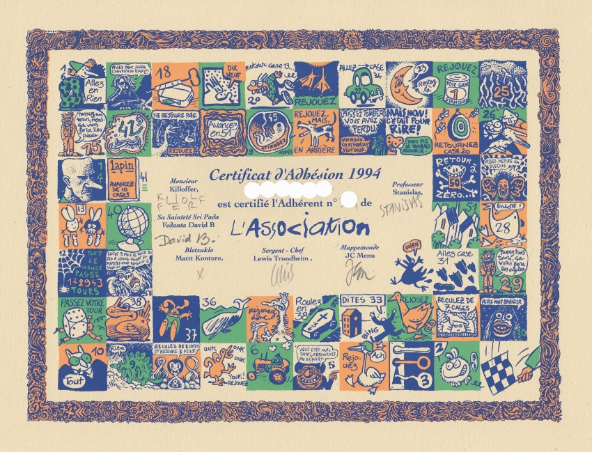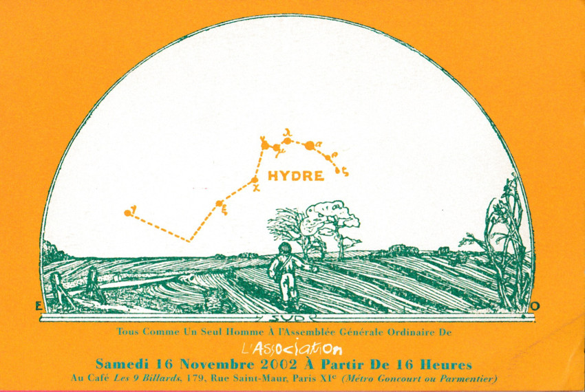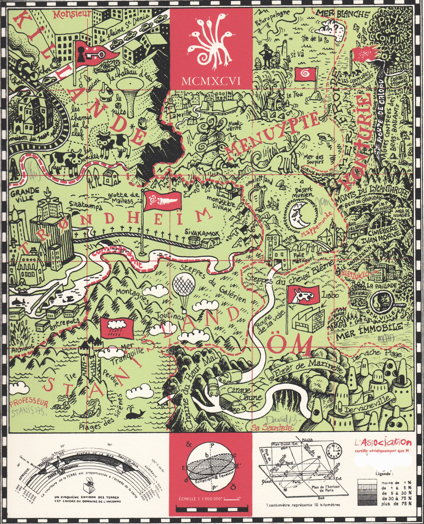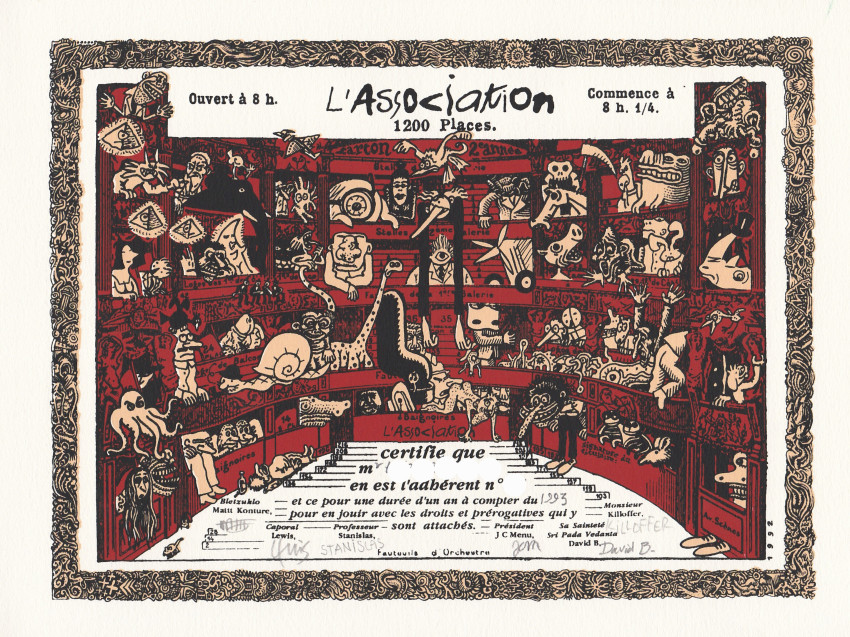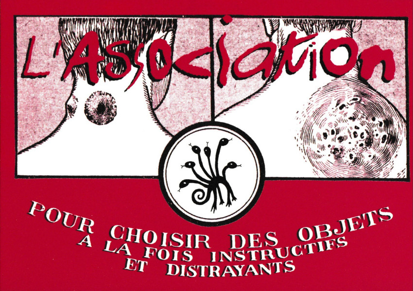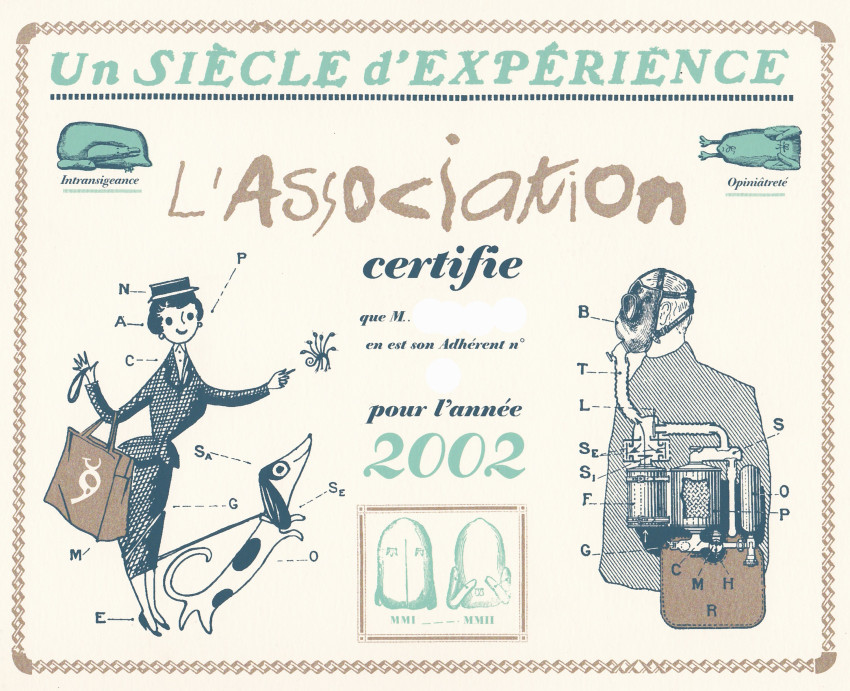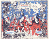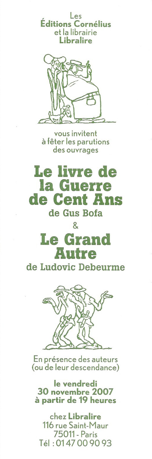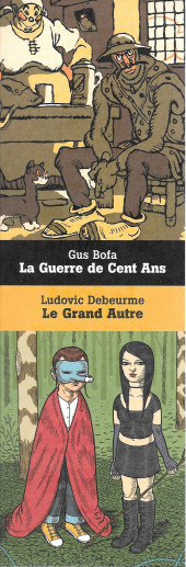 Commentaire : Carte dont la partie supérieure fait référence à l'album "La guerre de cent ans" de Gus Bofa et la partie inférieure à l'album "Le grand Autre" de Ludovic Debeurme.