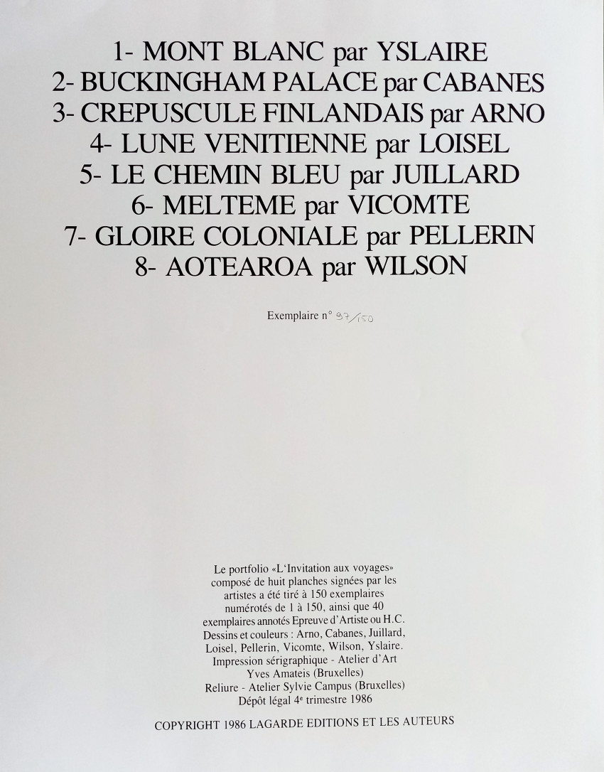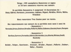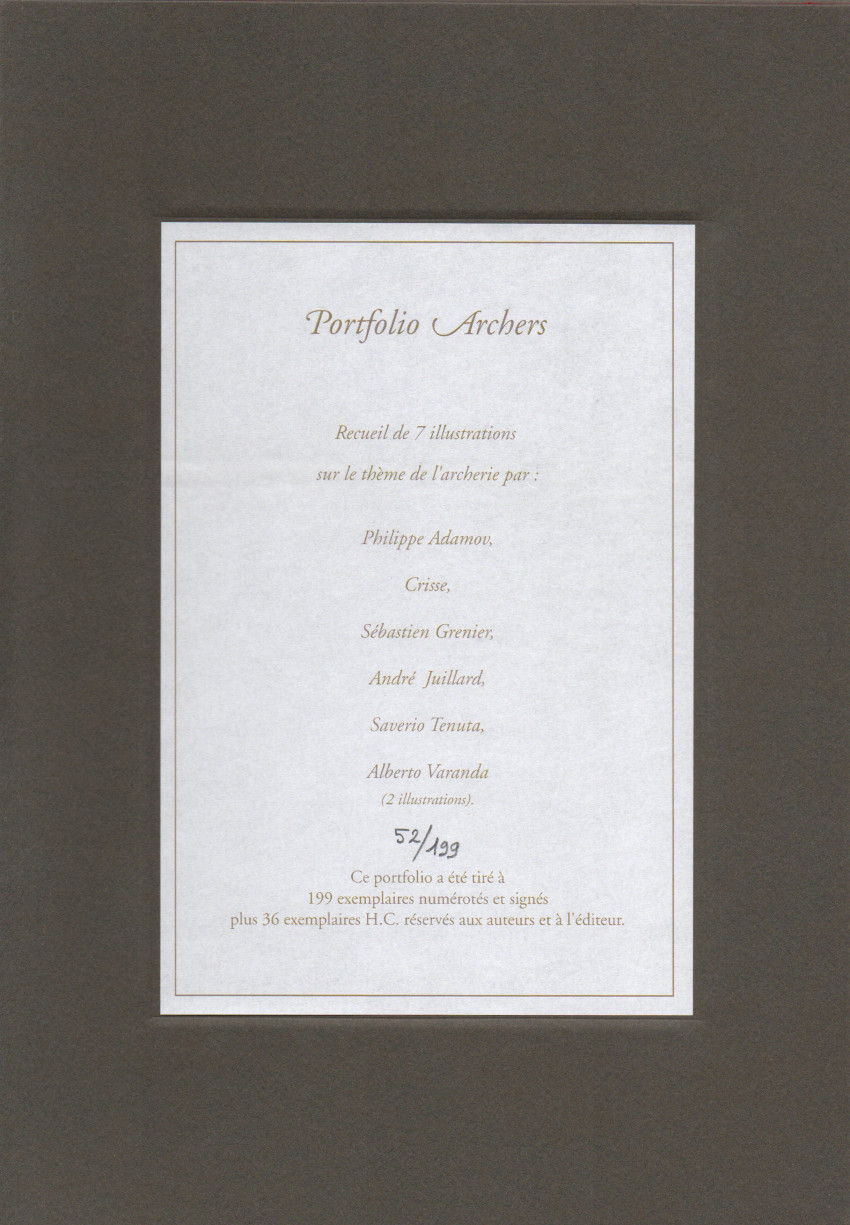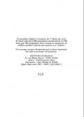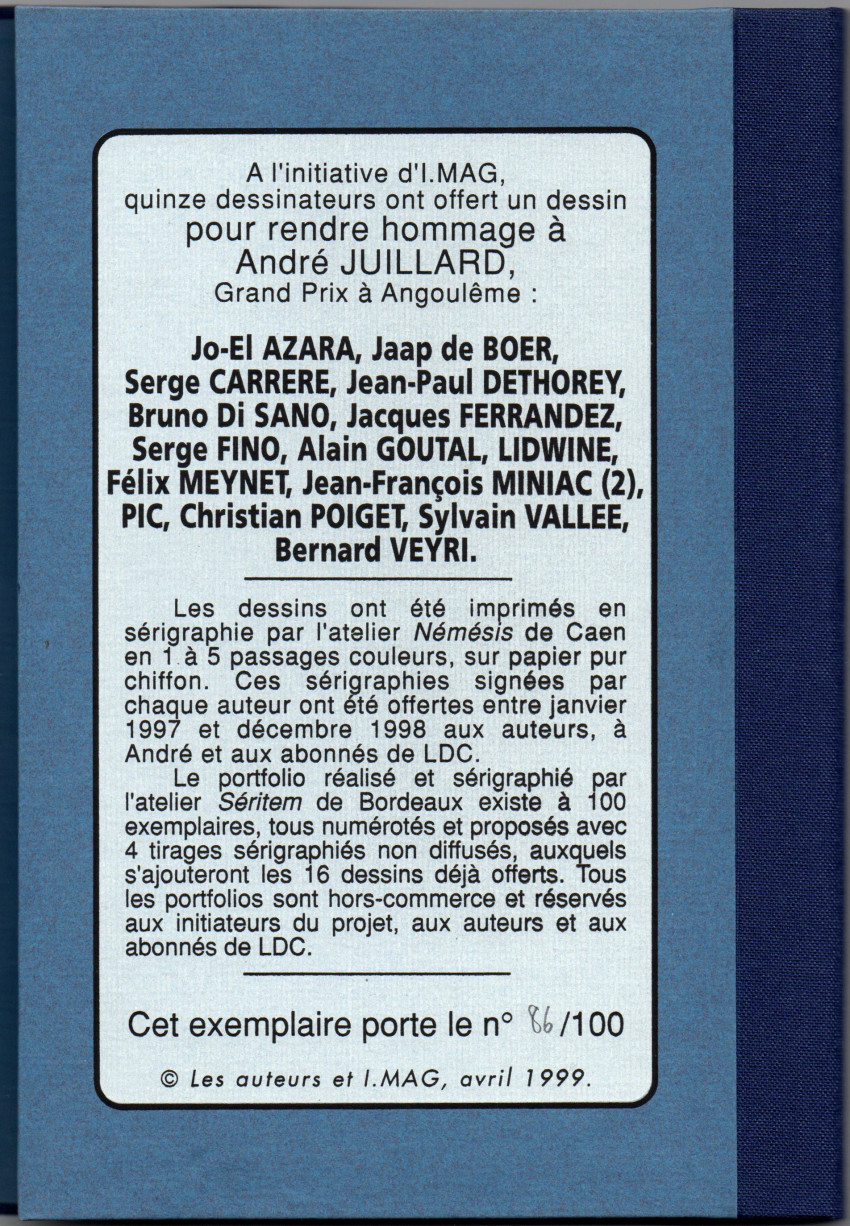 Commentaire : Livret de 16 pages contenu dans le portfolio attribuant chaque illustration à son auteur et décrivant leur biographie.