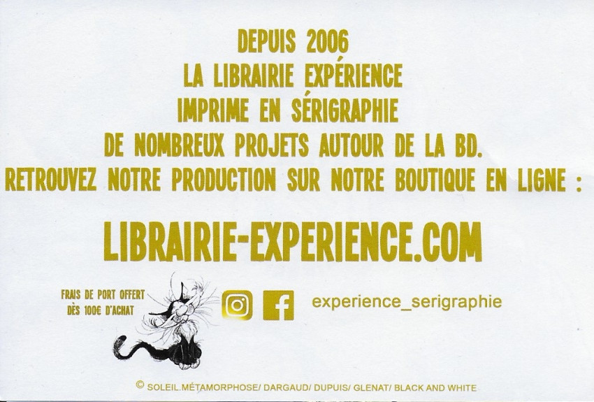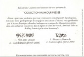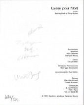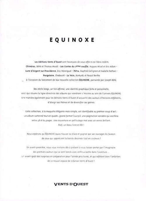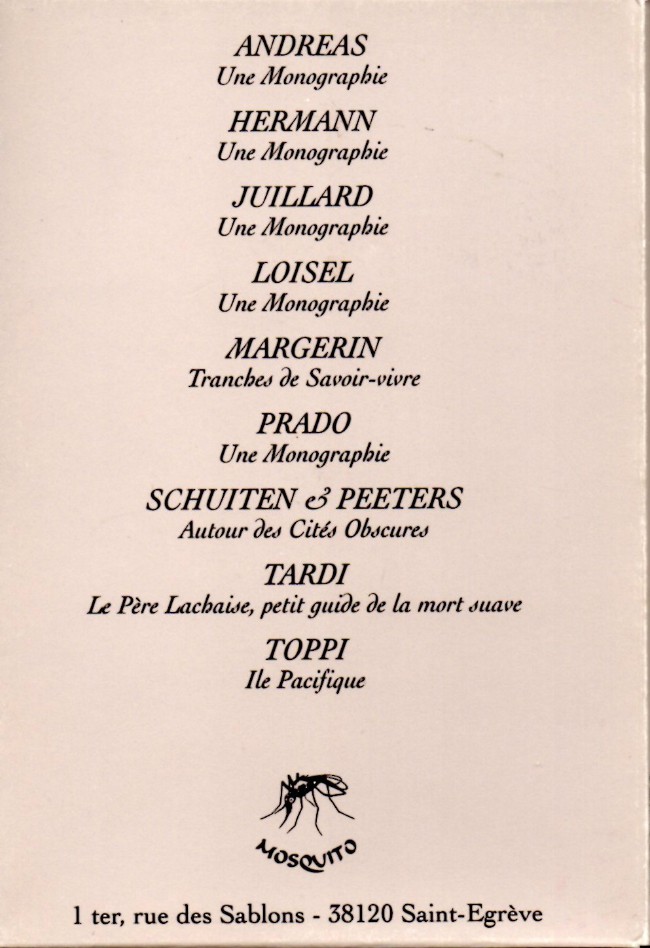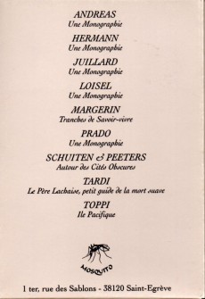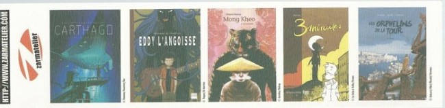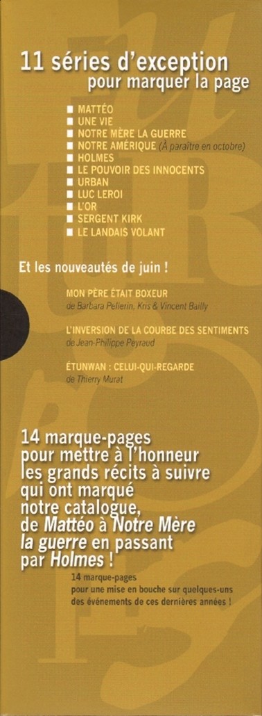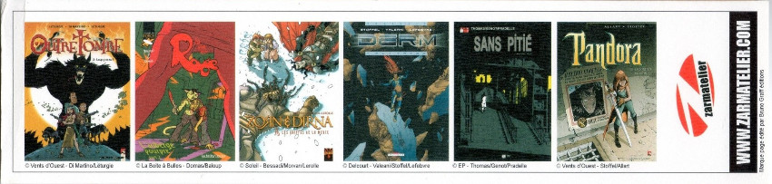 Commentaire : Verso non imprimé. Reprend les couvertures de : Mong Khéo tome 1, Eddy l'angoisse tome 1, Carthago tome 2, Les orphelins de la tour tome 2 et 3 Minutes.
