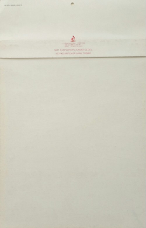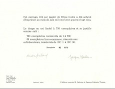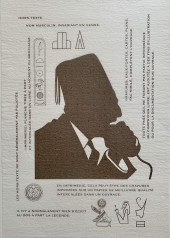 Commentaire : Diptyque contenant deux ex-libris à l'intérieur (image 2). A gauche, un ex-libris plié en deux, monochrome et noir et à droite la même image couleur, signée par W. Minus et F. Walthéry. Verso non imprimé.