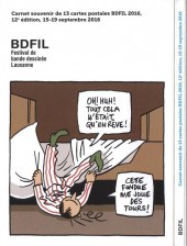 Commentaire : Illustré par Adrienne Barman, Zep, Hélène Bruller, Guillaume Dénervaud, Kalonji, Guillaume Long, Frederik Peeters, Tom Tirabosco, Buche, Aloys, Exem, Wazem, Poussin, Isabelle Pralong.