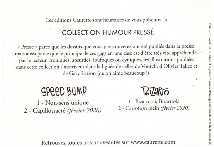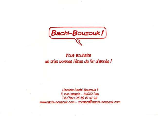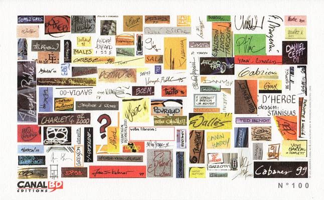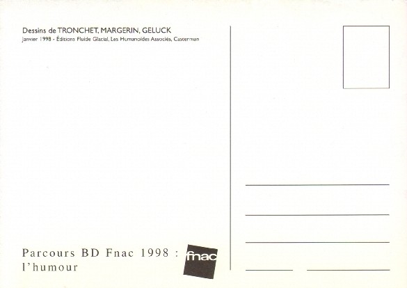 Commentaire : Couverture de Benito. Intérieur de Watier, Azuélos, Chevillard, Lecointre, Nat, Jupin, Delisle, Konture, P'tit Luc, de Crécy et Trondheim. Se compose de 12 fiches, enveloppées par un bandeau de la librairie. Verso non imprimé.