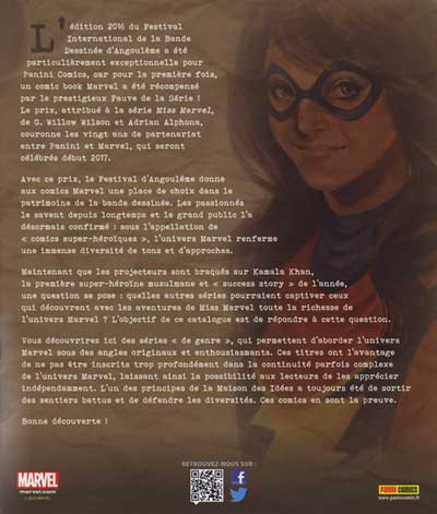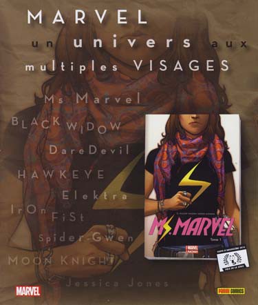 Commentaire : Dépliant présentant plusieurs produits Marvel / Panini comics : Ms. Marvel, Black Widow, Daredevil, Hawkeye, Elektra, Howard le canard, Iron Fist Spider Gwen...