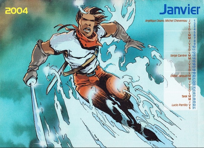 Commentaire : Calendrier offert courant 2001 (mois de sortie inconnu) pour le 15e anniversaire des éditions Delcourt. Contient des illustrations de Hervé Boivin (Lili & Winker), Civiello (Korrigans), Gérald Parel (7 secondes), Turf (La Nef des fous), Nicolas Malfin (Golden City), Thierry Robin (Koblenz), Cyril Pedrosa (Ring Circus), Jung (Kwaidan), Fabrice Lebeault (Horologiom), Yoann (Toto l'ornythorinque), Philippe Buchet (Sillage), Michel Plessix (Le Vent dans les saules).