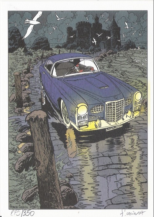 Commentaire : Fait partie des 14 illustrations contenues dans le portfolio. Francis Carin - Facel Vega FV2 - La voiture immergée.