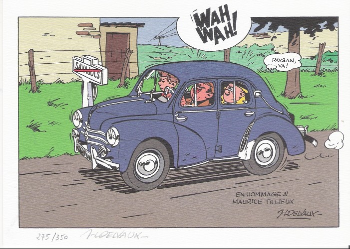 Commentaire : Fait partie des 14 illustrations contenues dans le portfolio. Jean-Luc Delvaux - Renault 4CV - Surboum pour 4 roues.