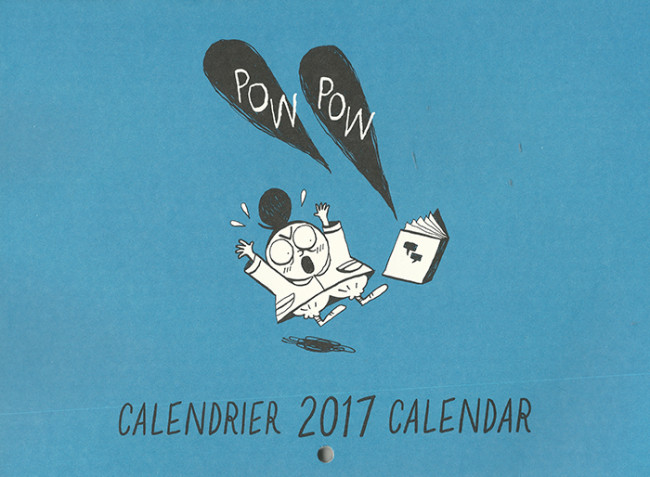 Commentaire : Artiste de couverture : Pascal. Les mois sont illustrés par: Sophie Yanow, Joana Mosi, Mirion Malle, Ned Wenlock, Cathon, Boum, Chris Oliveros, Catherin, Sophie Bédard, Axelle Lenoir, Xavier Cadieux. EAN : 0783970123961. Le calendrier comprend un catalogue des bandes dessinées éditées par les édition Pow Pow, présentation en français et en anglais.