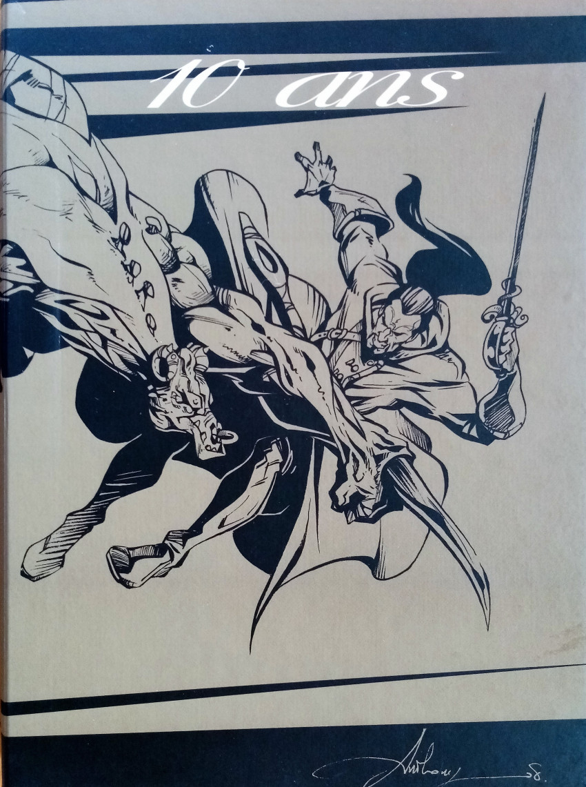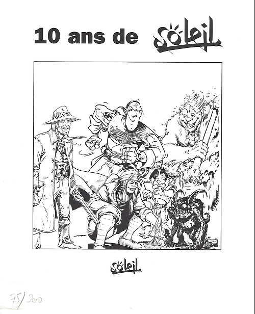 Commentaire : Ex-libris numéroté pour les 10 ans des éditions Soleil. Tirage limité à 200ex. Auteurs ayant entre-autres participé à cet ex-libris : Jean-Louis Mourier (Trolls de Troy), Claude Glaudel (Les Maîtres Cartographes), Serge Fino (Les Ailes du Phaéton), Didier Traquin (Lanfeust de Troy).