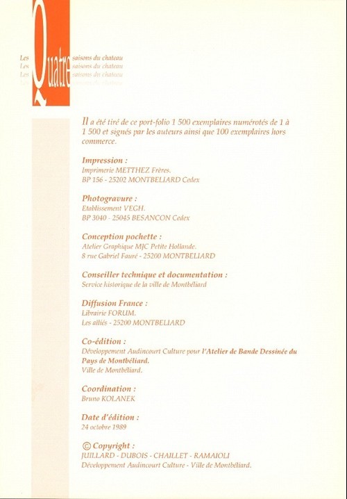 Commentaire : A l'intérieur, des illustrations de Cosey, Clovis, Turk, Fernanadez, Denayer, Gus, Dany, Giné, Séron, Denayer, Marvano, Vallès.