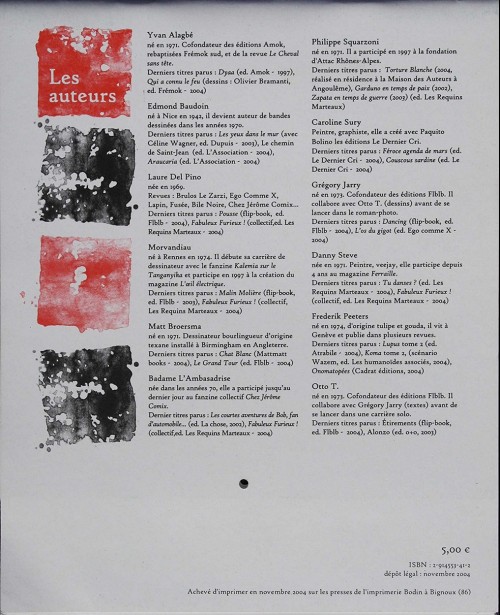 Commentaire : Illustré par Edmond Baudoin, Morvandiau, Otto T., Philippe Suarzoni, Yvan Alagbé... (voir image du verso).