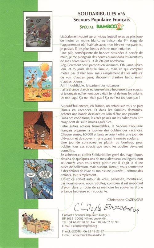 Commentaire : A l'intérieur, des illustrations de Marvano, Denayer, De Gieter, Giné, Fernandee, Séron, Gos & Walt, Turk, Benn, Bédu, Dany, Weyland.