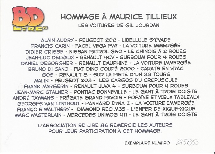Commentaire : Couverture : Teng. A l'intérieur, des illustrations de Kas, J-C Servais, Dany, O.Grenson, Griffo, Lamquet, Rollin, Neuray, Jigounov, Vallès, Reculé, Teng.