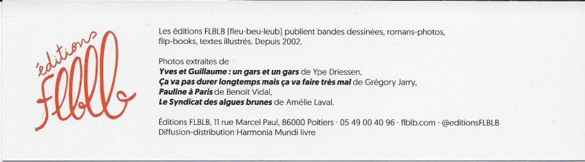 Commentaire : Marque-page en "roman photo" avec des images issues des albums de Ype Driessen, Grégory Jarry, Benoit Vidal et Amélie Laval.