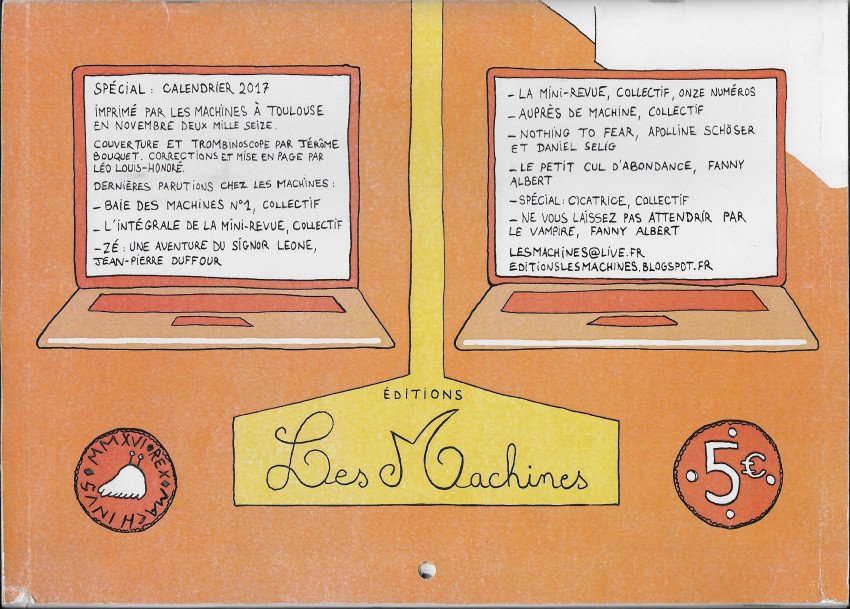 Commentaire : La couverture est illustrée par Mirion Maille. Les mois sont illustrés par: Cathon. Eloise Marseille, Iris, Sophie Bédard, Julien Dallaire-Charest, Julie Delpote, Francis Desharnais, Al Gafa, Boum, Richard Suicide, Blonk, Thom