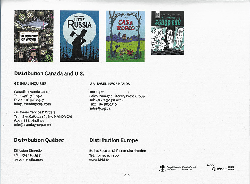 Commentaire : La couverture est illustrée par Sophie Bédard. Les mois sont illustrés par: Xavier Cadieux, Meags Fitzgerald, Al Gofa, François Vigneault, Julie Delporte, Antonin Buisson, Cathon, Zviane, Richard Suicide, Thom, Blonk, Pascal Girard.