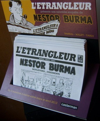 Commentaire : Sur côté inscrit 978-2-203-07487-3 suivi de Casterman puis de la mention hors-série. Présentation chez les commerçants du numéro 1 de l’Étrangleur sous forme de journal sorti en Mars 2013.