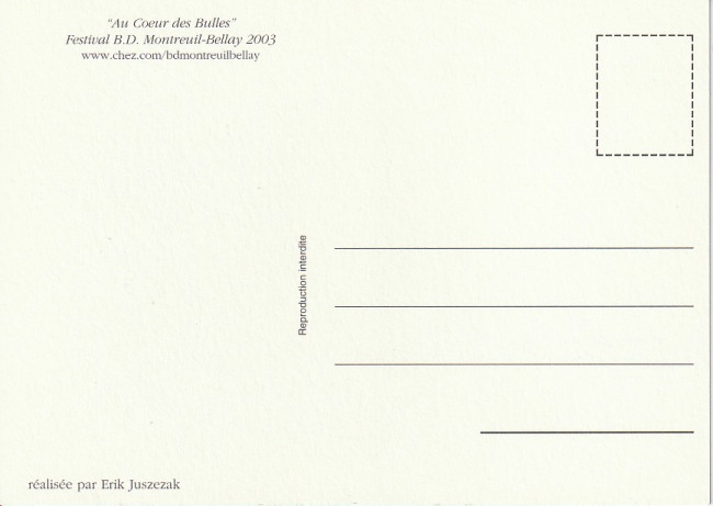 Commentaire : Carte éditée à l'occasion du Festival BD "Au coeur des bulles" de Montreuil-Bellay.