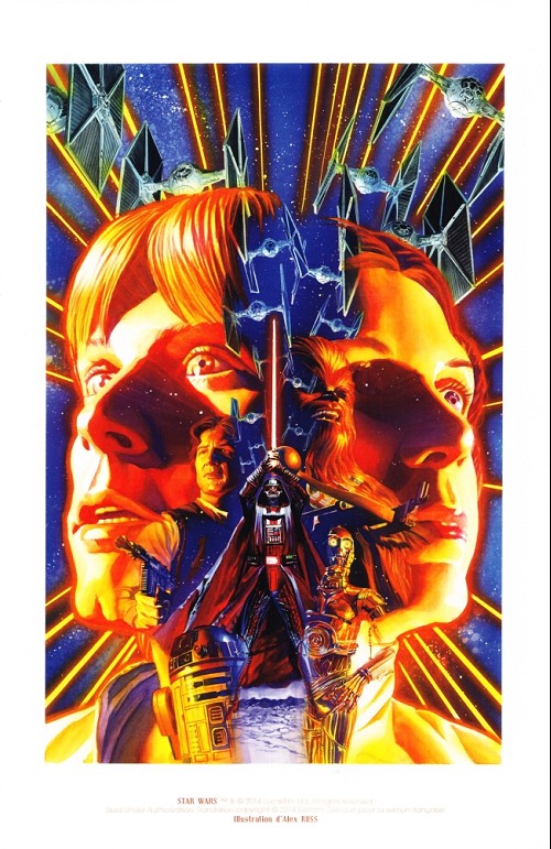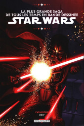 Commentaire : Dépliée, cette affiche présente, sous la forme d'un poster, l'ensemble des albums Star Wars publiés chez Delcourt, classés chronologiquement.