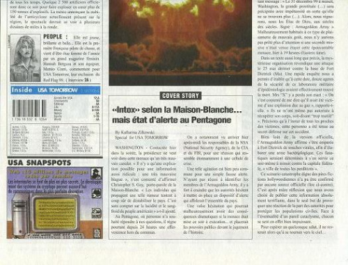 Commentaire : Ce journal se veut le numéro du vendredi 31 décembre 1999 de "USA Tomorrow". Il était offert avec l'EO du tome 1 de la série.