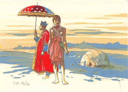 Commentaire : Edité à l'occasion de l'exposition "Hermann rétrospective" à la Galerie Bruxelles Paris du 2 au 18 octobre 2015. Illustration signée, offerte pour l'achat des 2 portfolios "Kurdy" et "Bois Maury".