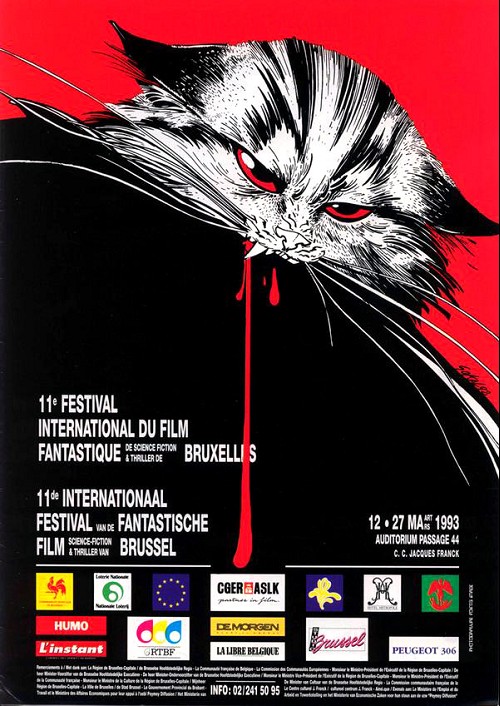 Commentaire : Affiche du Festival du Film Fantastique de Bruxelles - le Brussels International Fantastic Film Festival (BIFFF) - du 12 au 27 mars 1993 - illustrée par un dessin inédit de Benoît Sokal.