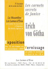 Commentaire : Carte éditée à l'occasion de l'exposition de dessins originaux de Von Gotha à la galerie Les Larmes d'Eros, du 12 octobre au 4 décembre 1999.