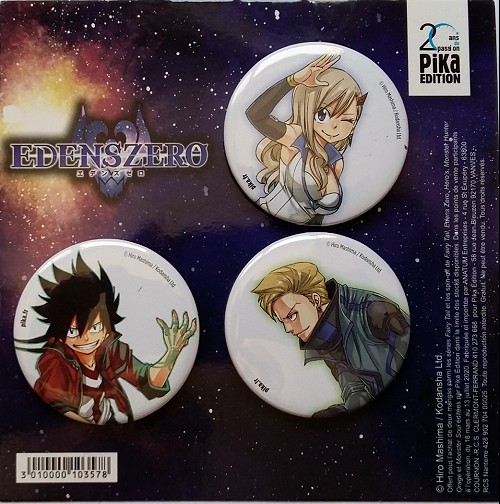 Commentaire : Lot de 3 badges offert pour l'achat de 2 mangas édité par Pika Edition du 18 mars au 13 juillet 2020.
