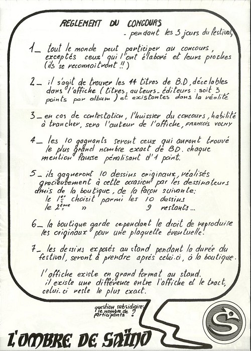 Commentaire : Pour un jeu concours organisé par la librairie pendant un festival.