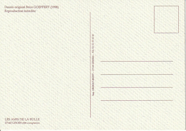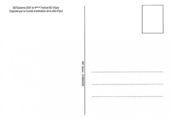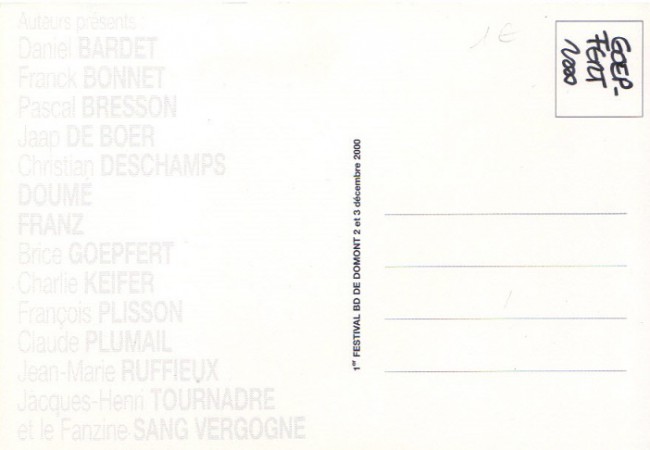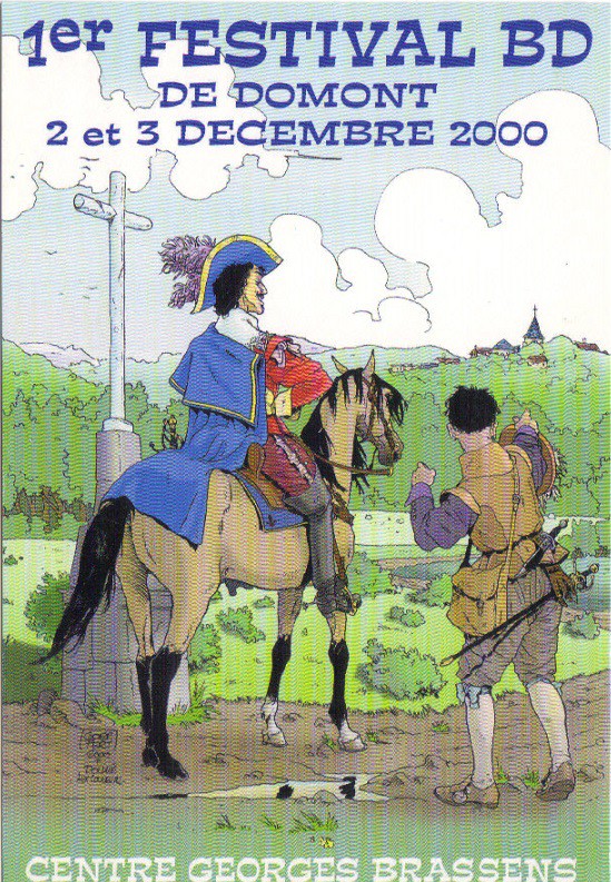 Commentaire : Carte éditée à l'occasion du 1er Festival BD de Domont, les 2 et 3 décembre 2000.