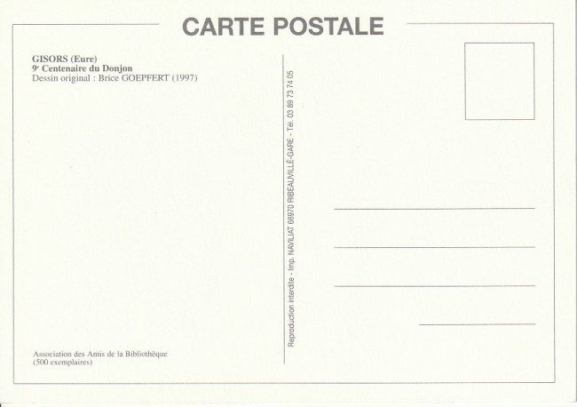 Commentaire : Carte éditée à l'occasion du 9è Centenaire du Donjon de Gisors.