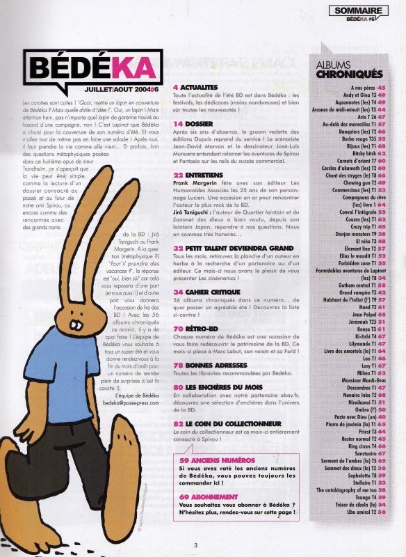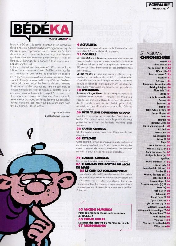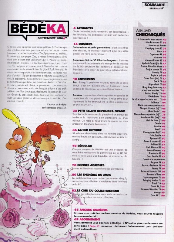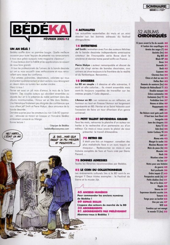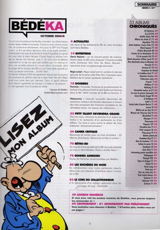 Sommaire : Bédéka est un magazine qui s’est créé à partir de la passion d’un groupe de journalistes pour la BD.