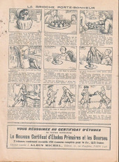 Sommaire : - Un drole d'embusqué. - Le bon appareil. - Gringalet (grand roman dramatique inédit, par Pierre Guillon). Chapitre LXXXIII. En reconnaissance ! - La table à rallonges. - Jacques, l'enfant touvé (troisième partie). XXIX. La chasse aérienne. - Culture contre "kultur" : les boys-scouts alliés. Le roman de la jeunesse héroïque, par Marc Croizilles. Chapitre XXXV. Condamnés à mort. - Le calvaire d'un héros. - La tarte aux pommes et les boches. - Les housards de la revanche. Chapitre XLIV. La Pèche à la marmite. - Les housards de la revanche. Chapitre XLV. Dans la nuit. - Une poignée de braves. - François l'Intrépide et son chien Papuchon. Chapitre V. La véritable clef des champs.