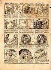 Sommaire : - Le lache. - Le truc de Marius. - Gringalet (grand roman dramatique inédit par Pierre Guillon). Chapitre XLIX. Autour d'un fort ! - Brisquet et Gaspard. - Jacques, l'enfant trouvé (deuxième partie). XXXIII. La viste du colonel. - Culture contre "kultur" : les boys-scouts alliés. Le roman de la jeunesse héroïque, par Marc Croizilles. Chapitre XXI. Le Merveilleux Voyage de le Ciel. - Coeur muet. Chapitre V. Le voyage de l'Empereur. par Teddy Smith. - Les housards de la revanche. Chapitre X. Le combat ! - Commet César Annibal Ladoucette devint un brave. - Petit Soldat de la Grande Guerre. Roman héroïque par Blanche Petithuguenin. Chapitre XLVII. Chez l'ennemi ! - Les exploits de chiens de guerre. Dax, le chien boxeur et téléphoniste (histoire vraie).