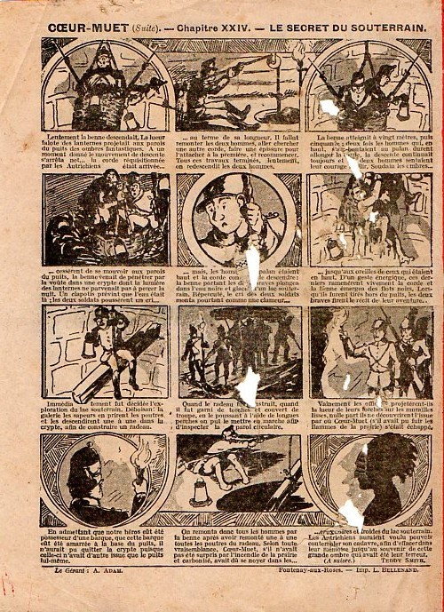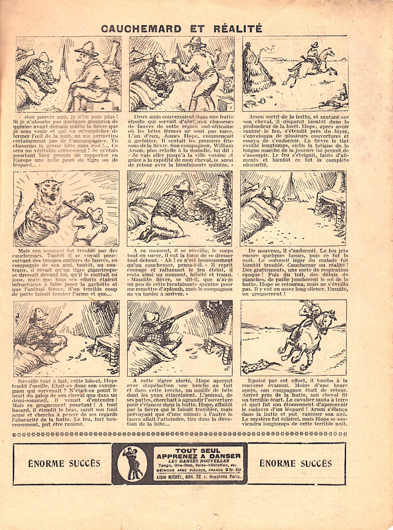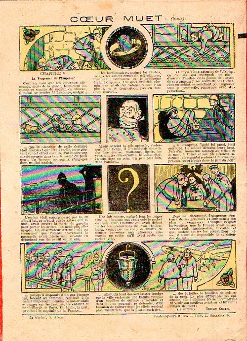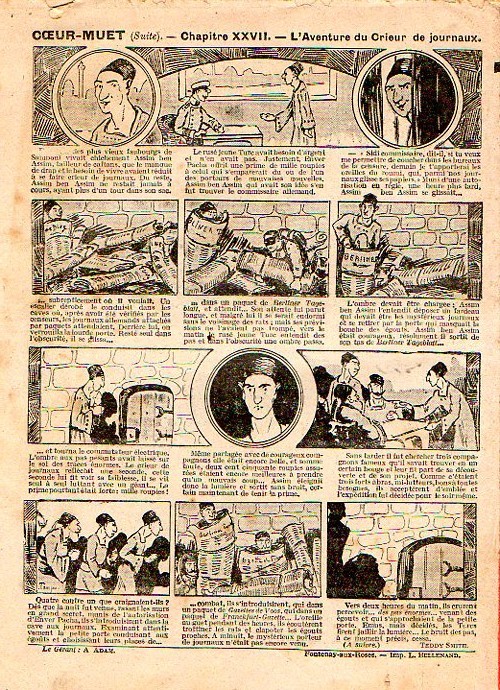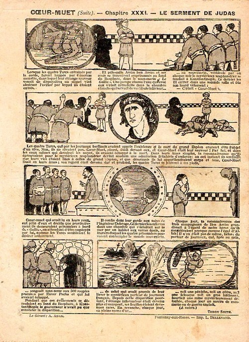 Sommaire : - Le cuistot s'amuse ! - Le trapèze volant. - Gringalet (grand roman dramatique inédit par Pierre Guillon). Chapitre LXXV. Plus d'espoir ! - Jacques, l'enfant trouvé (troisième partie) - XXV. Un coup de feu dans la nuit. - Les housards de la revanche. Chapitre XXXVI. Une reconnaissance allemande. - Les housards de la revanche. Chapitre XXXVII. Feu à volonté ! Histoire vraie. Deux orphelins. - L'ane de l'arsenal (Histoire vraie). - Coeur-Muet. Chapitre XXXI. Le serment de Judas. par Teddy Smith.