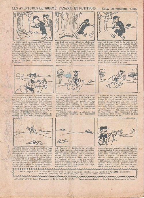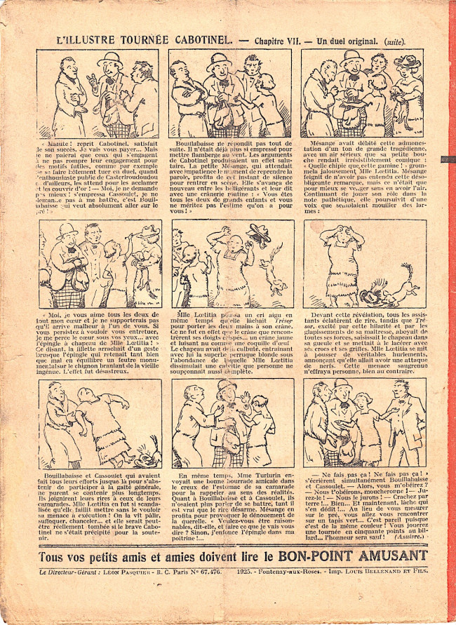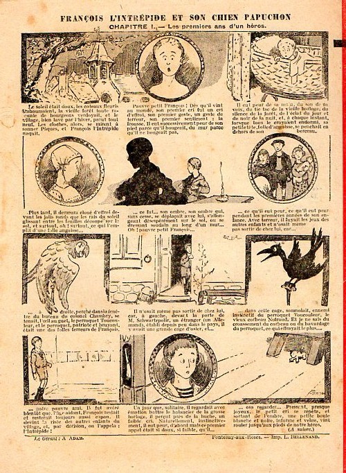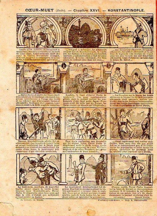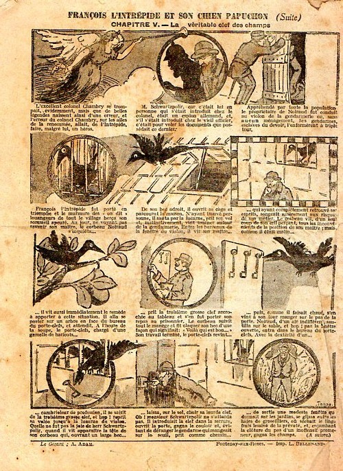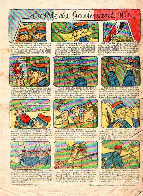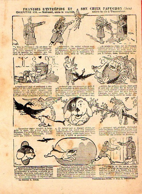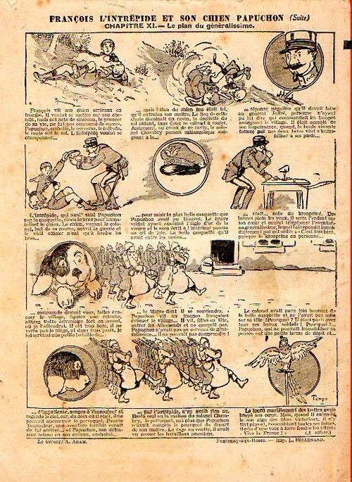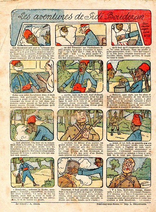 Sommaire : - Von Pindepitz débute au théatre. - Singulière capture ! - Gringalet (grand roman dramatique inédit par Pierre Guillon). Chapitre LXXI. Gringalet ne "s'en fait pas" ! - Toto veut un... boche ! - Le singe. - Jacques, l'enfant trouvé (troisème partie). XXI. L'apparition ! - Culture contre "kultur" : les boys-scouts alliés. Le roman de la jeunesse héroïque, par Marc Croizilles. Chapitre XXXI. Les quatre fous de Brendingen. - Les housards de la revanche. Chapitre XXXII. Le plan de Jean. - Les housards de la revanche. Chapitre XXXIII. Le bouton fatal. - Petit Soldat de la Grande Guerre. Roman héroïque par Blanche Petithuguenin. Deuxième partie. Chapitre XVII. Auprés d'un mourant. Chapitre XVIII. Nouveau deuil. - Le salut au drapeau. - Coeur-muet. Chapitre XXVII. L'Aventure du Crieur de journaux. par Teddy Smith.