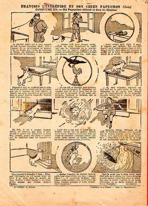 Sommaire : - Le sorcier. - Le choix du major. - Gringalet (grand roman dramatique inédit par Pierre Guillon). Chapitre XCIII. L'héorisme d'un brave. - Le mort qui tue. - Jacques, l'enfant trouvé (troisème partie). XXXIV. Le Mystère de la Péniche. - Culture contre "kultur" : les boys-scouts alliés. Le roman de la jeunesse héroïque, par Marc Croizilles. Chapitre XXXVII. Jeannine en danger. - Les housards de la revanche. Chapitre LVII. Prisonnier ! - Les housards de la revanche. Chapitre LVIII. Vers l'exil. - Curieuse fin d'un boche. - Le remplaçant. - Le clairon de Verdun. - François l'intrépide et son chien papuchon. Chapitre XV. Où Papuchon défend le Coq du Clocher.