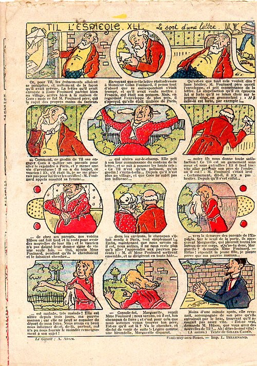 Sommaire : - Un traitement efficace. - Le cerceau et les pommes de terre. - Gringalet (grand roman dramatique inédit par Pierre Guillon). - Ruse d'enfants. - Jacques, l'enfant trouvé. - Le chant du départ. - Petit Soldat de la Grande Guerre. Roman héroïque par Blanche Petithuguenin. - Au drapeau ! - Til l'Espiegle XLII. Til régénéré.
