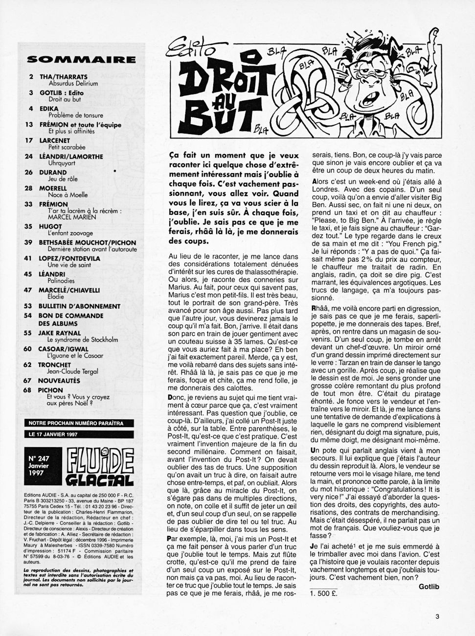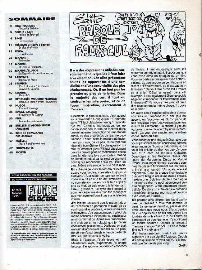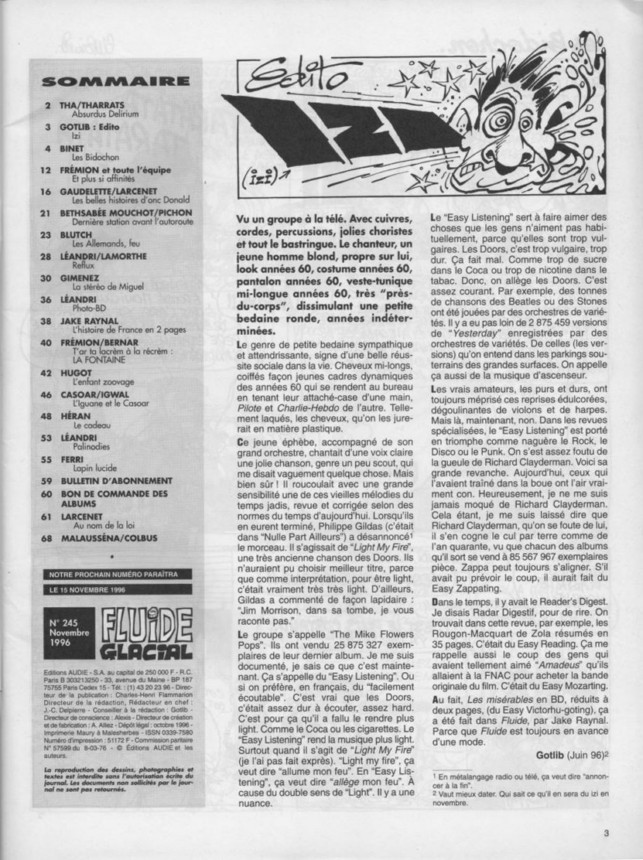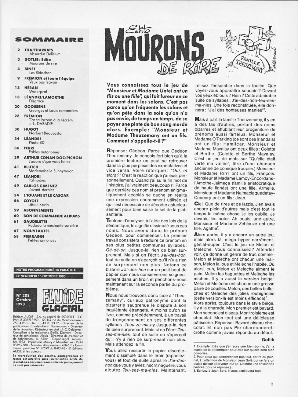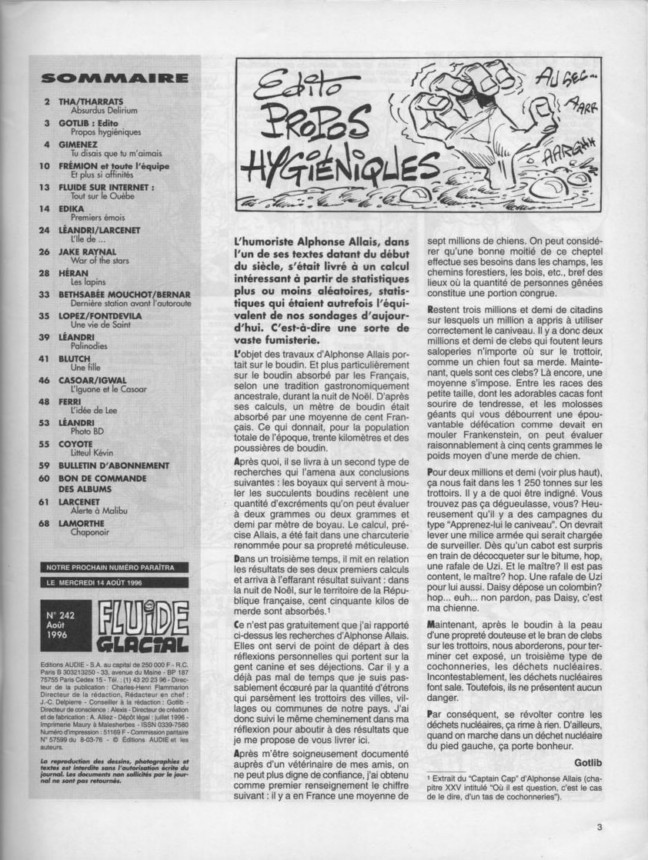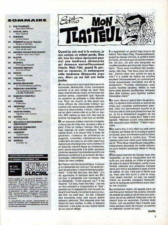 Sommaire : Couverture : Larcenet Editorial : Gotlib 4e de couverture : Lamorthe