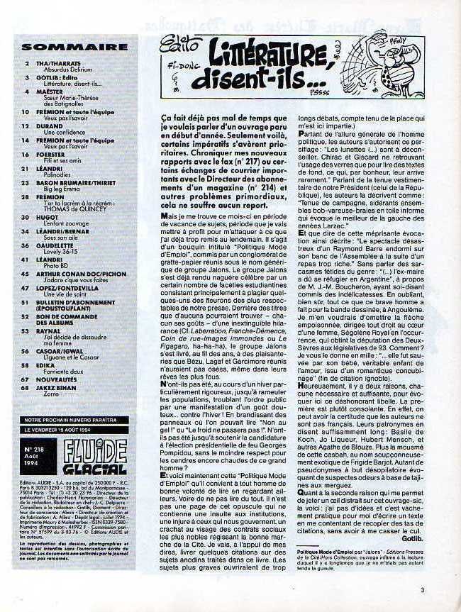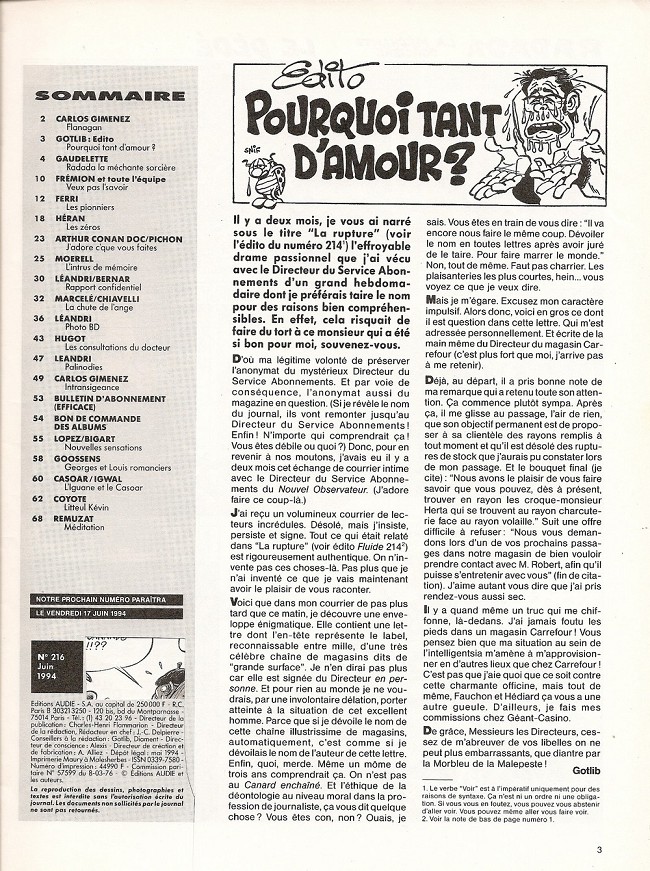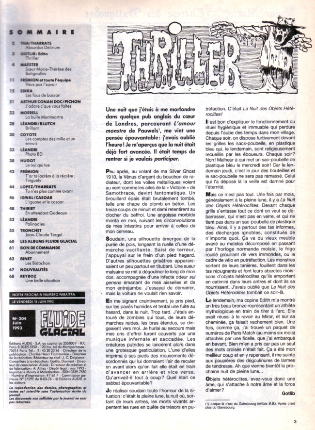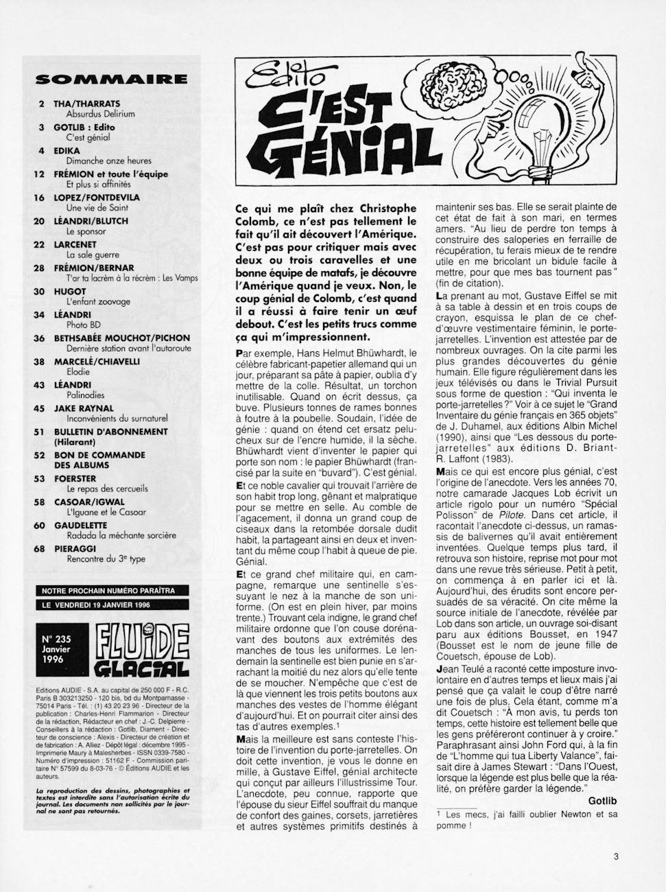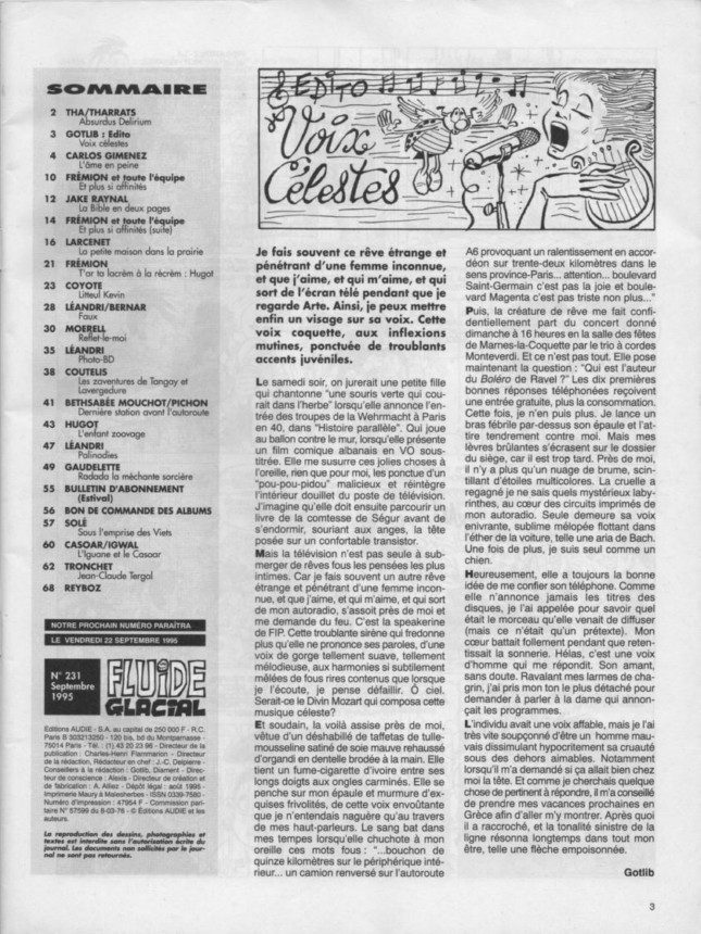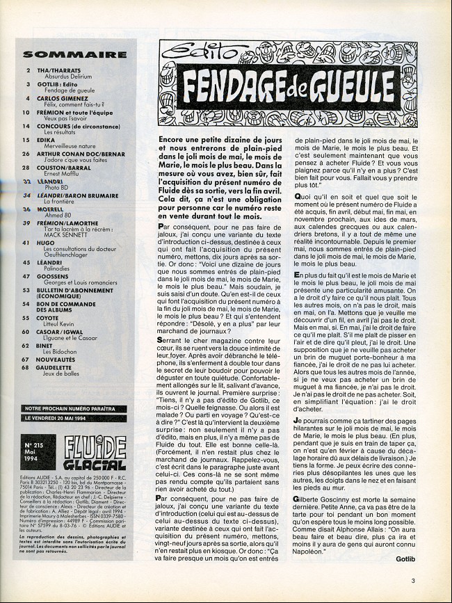 Sommaire : Couverture : Larcenet Editorial : Gotlib 4e de couverture : Lamorthe