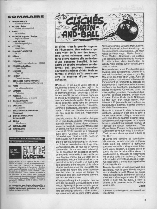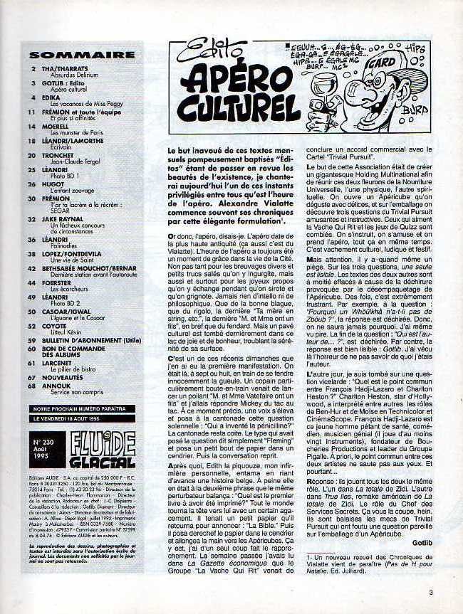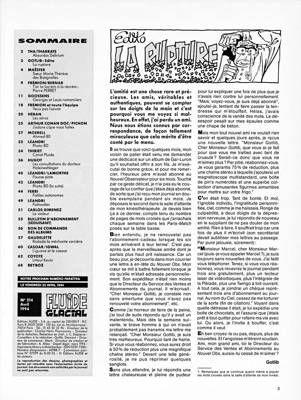 Sommaire : Couverture : Edika Editorial : Gotlib 4e de couverture : Pichon