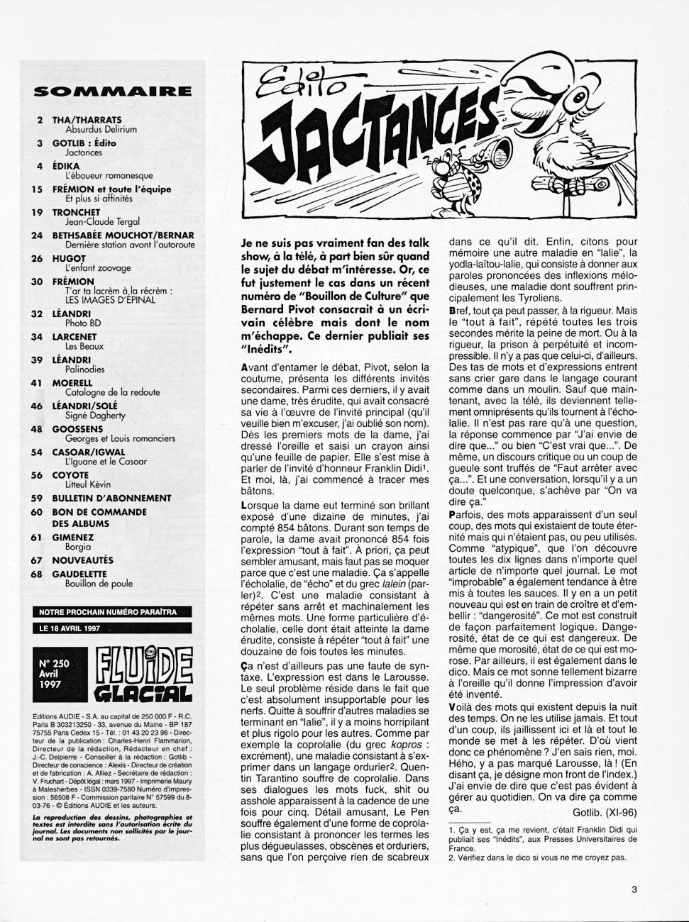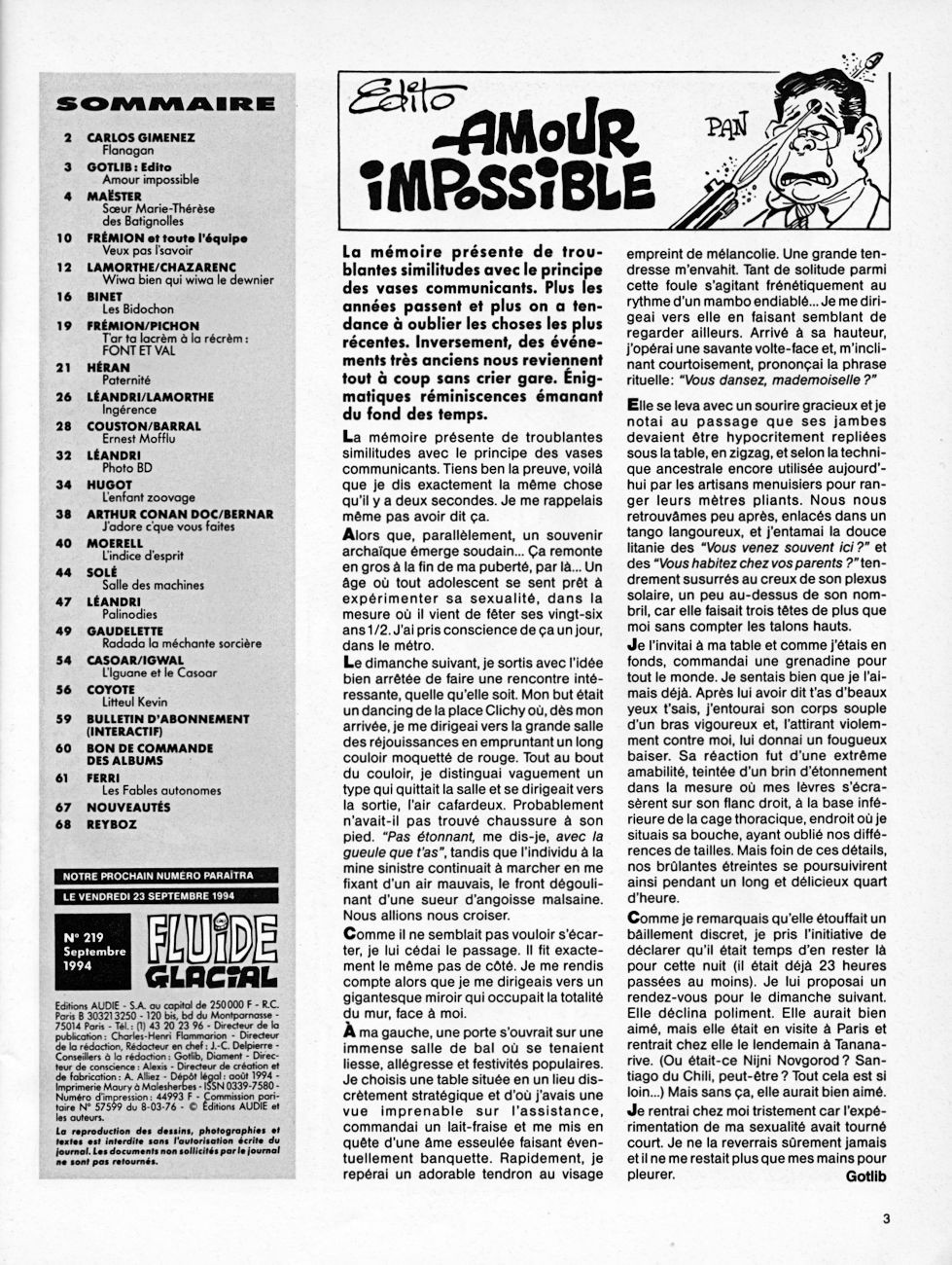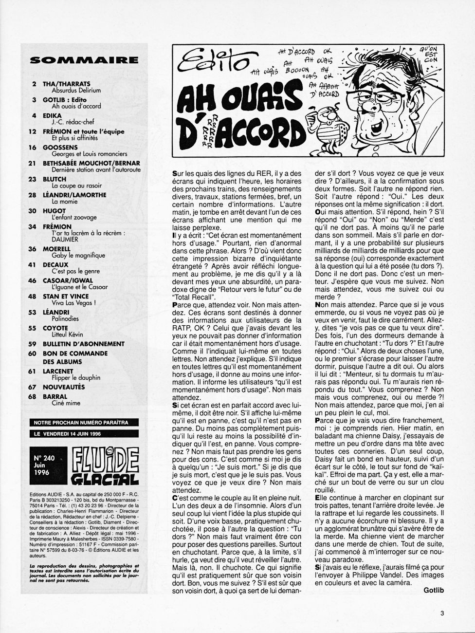 Sommaire : Couverture : Larcenet Editorial : Gotlib 4e de couverture : Edika