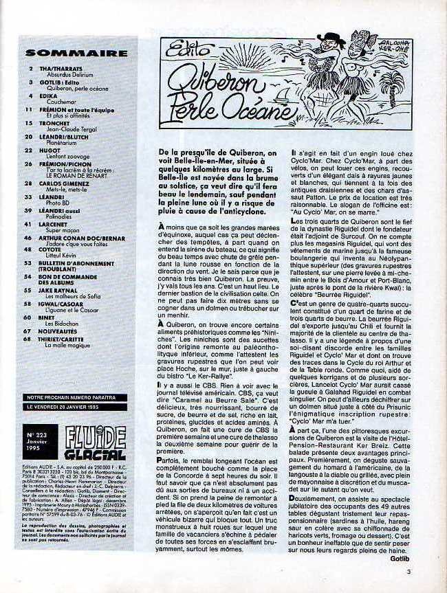 Sommaire : Couverture : Larcenet Editorial : Gotlib 4e de couverture : Jakez et Bihan