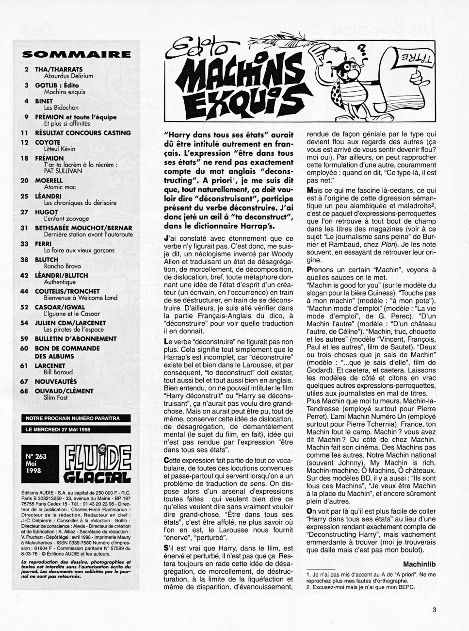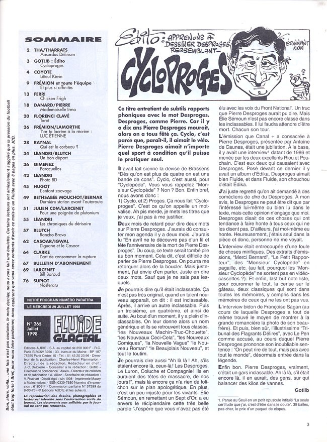 Sommaire : Couverture : Edika Editorial : Gotlib 4e de couverture : Pichon