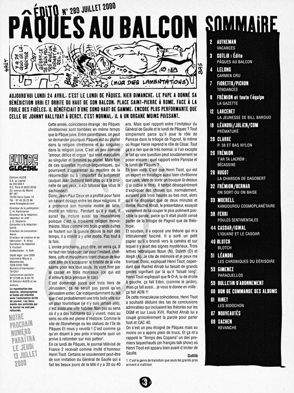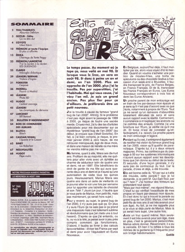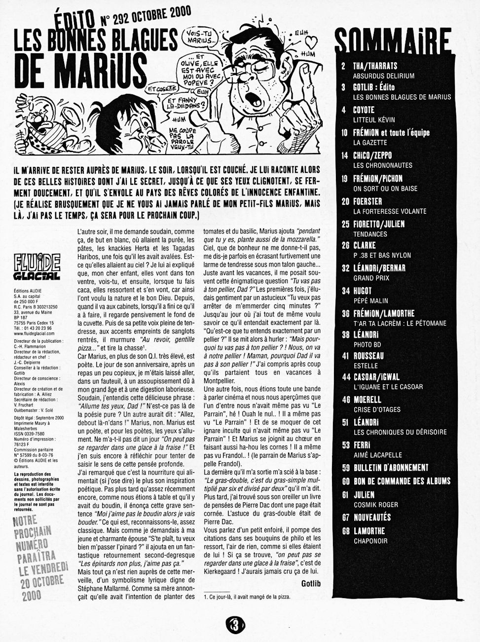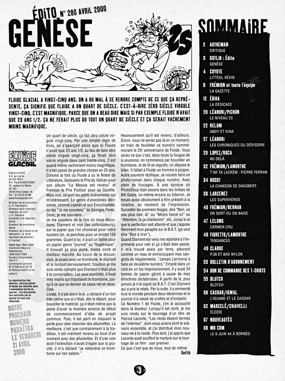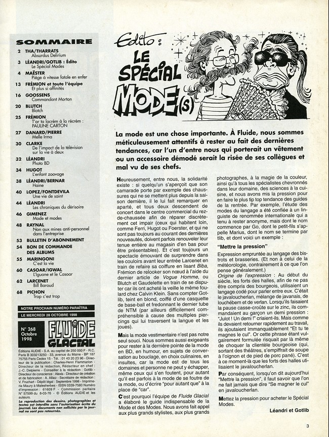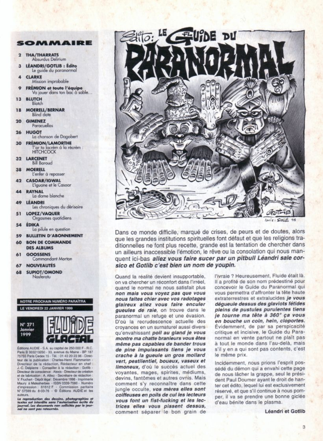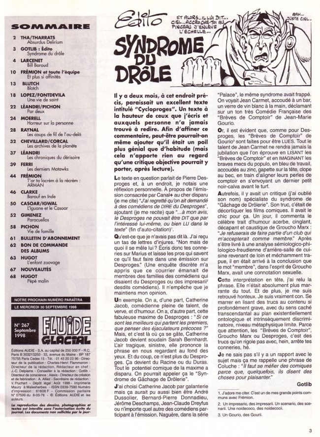 Sommaire : couverture :Edika. 4ème de couverture : Supiot - Omond. Edito : Léandri - Gotlib