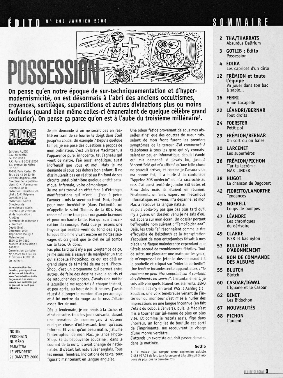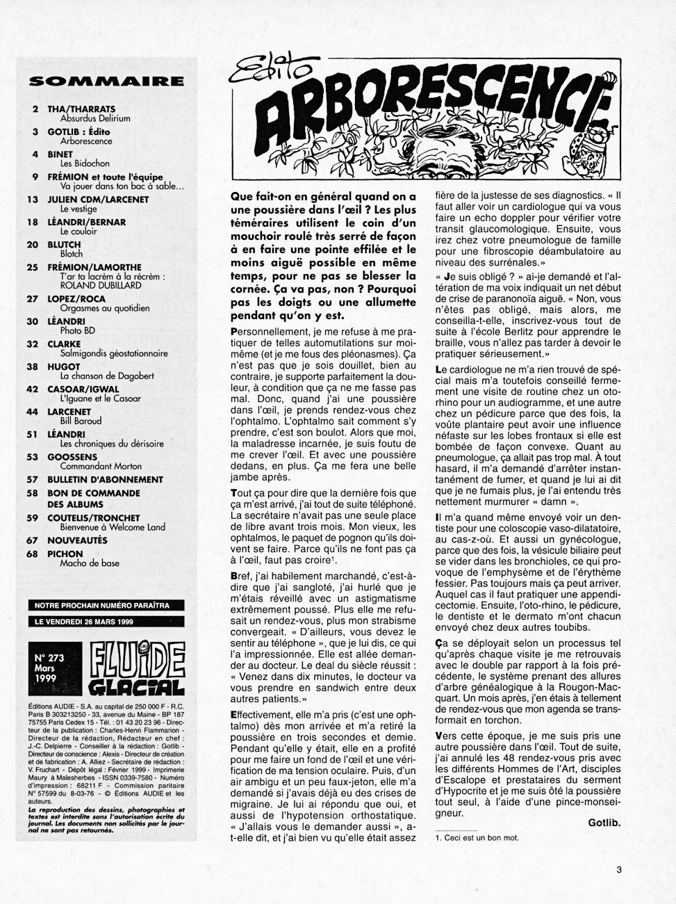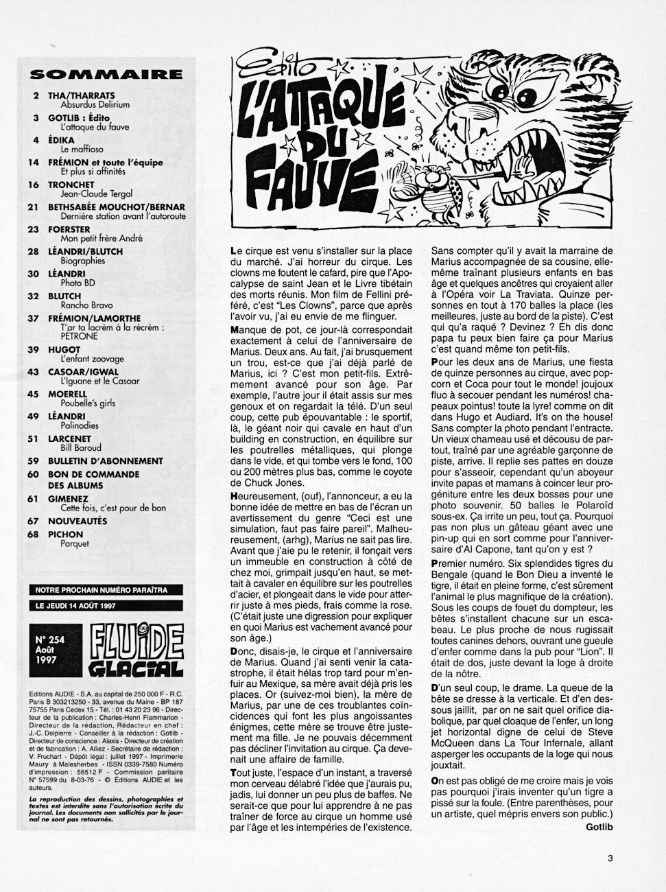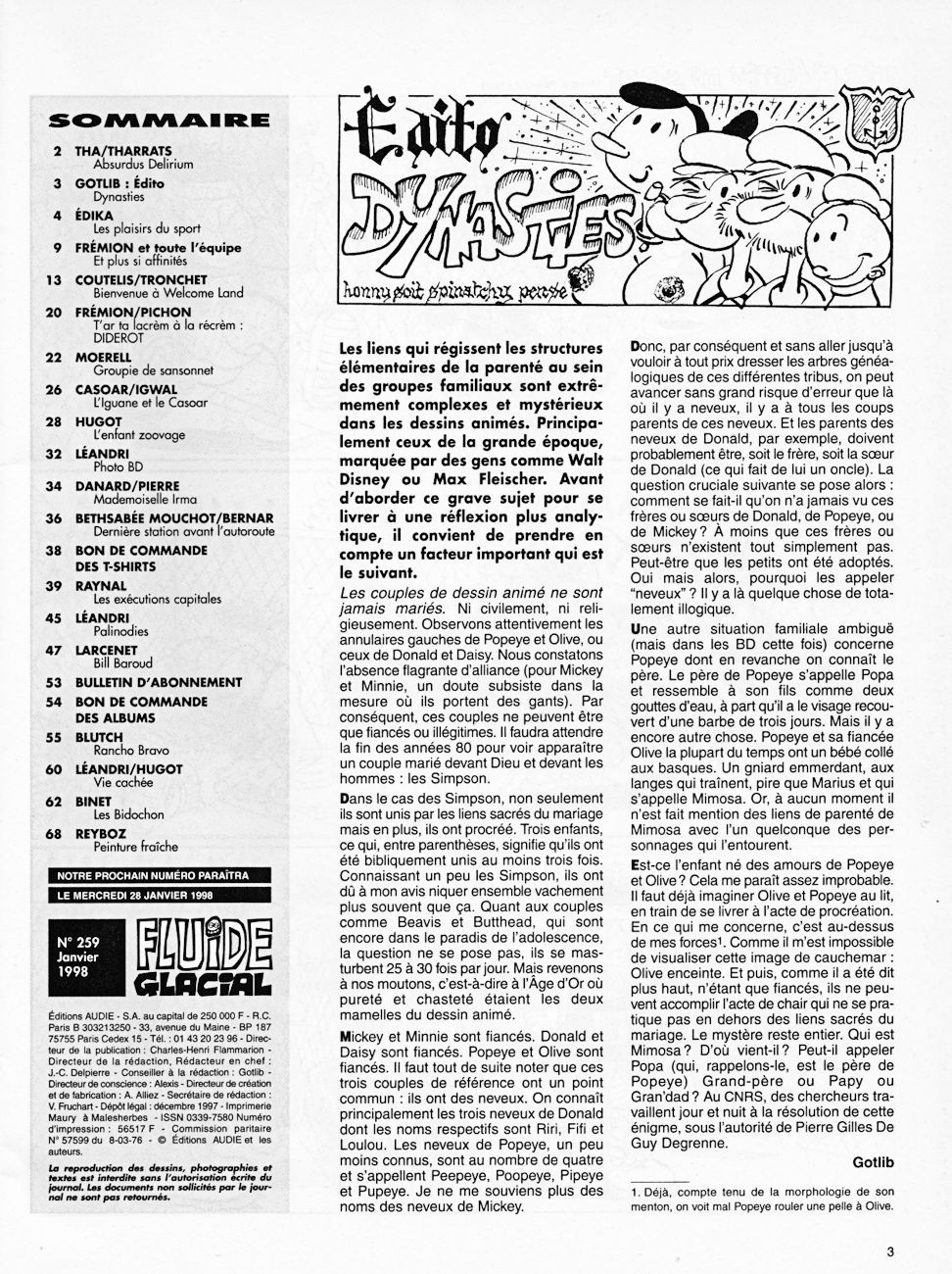Sommaire : couverture :Edika. 4ème de couverture : Supiot - Omond. Edito : Léandri - Gotlib