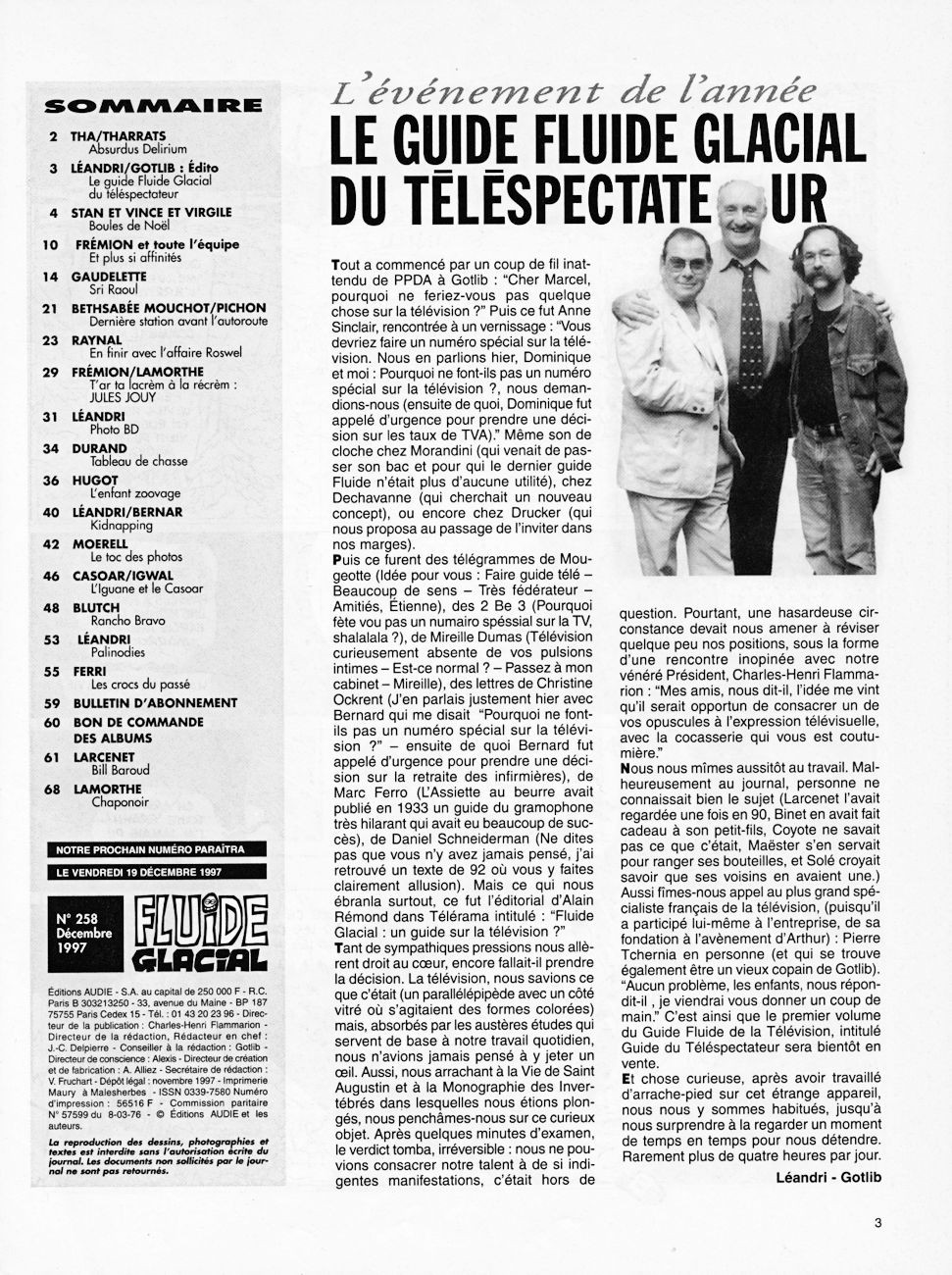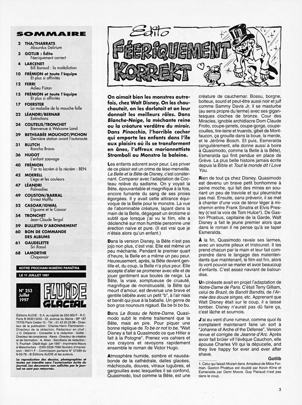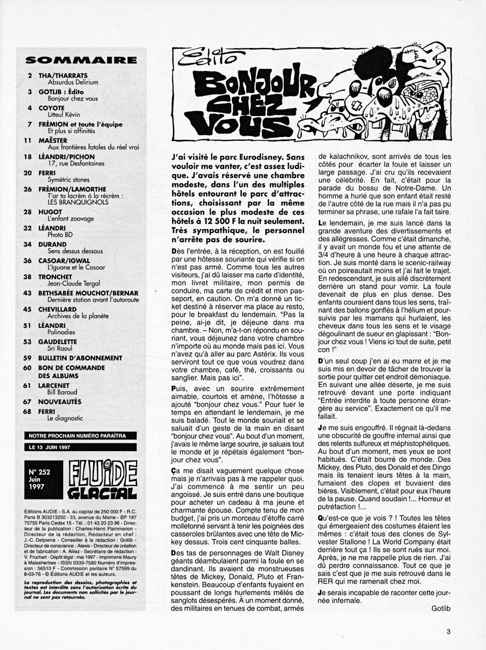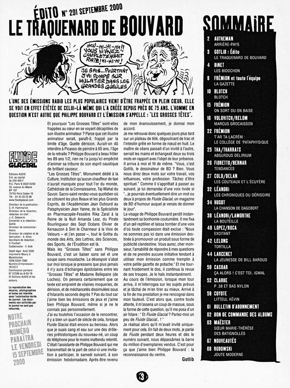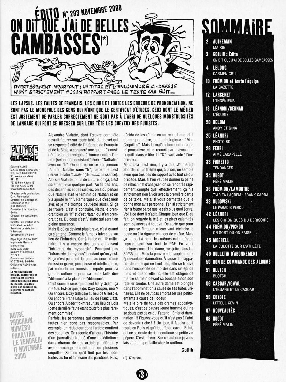 Sommaire : couverture :Edika. 4ème de couverture : Supiot - Omond. Edito : Léandri - Gotlib