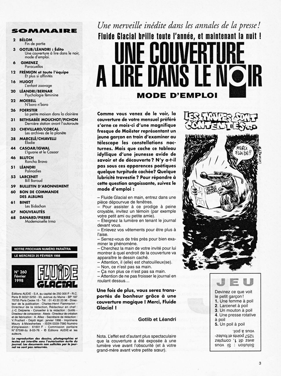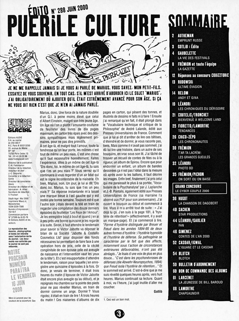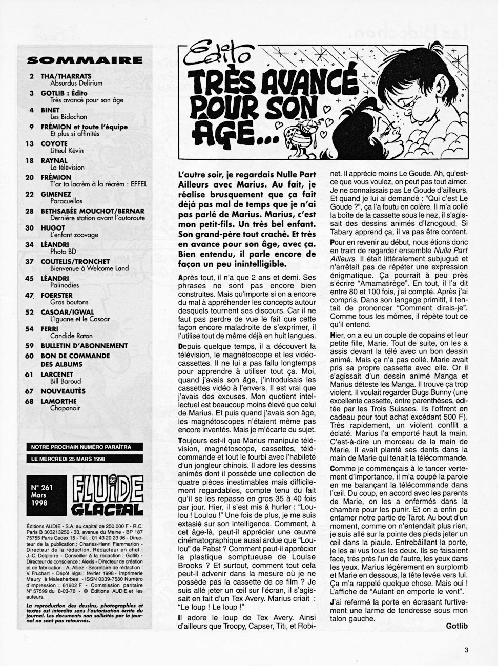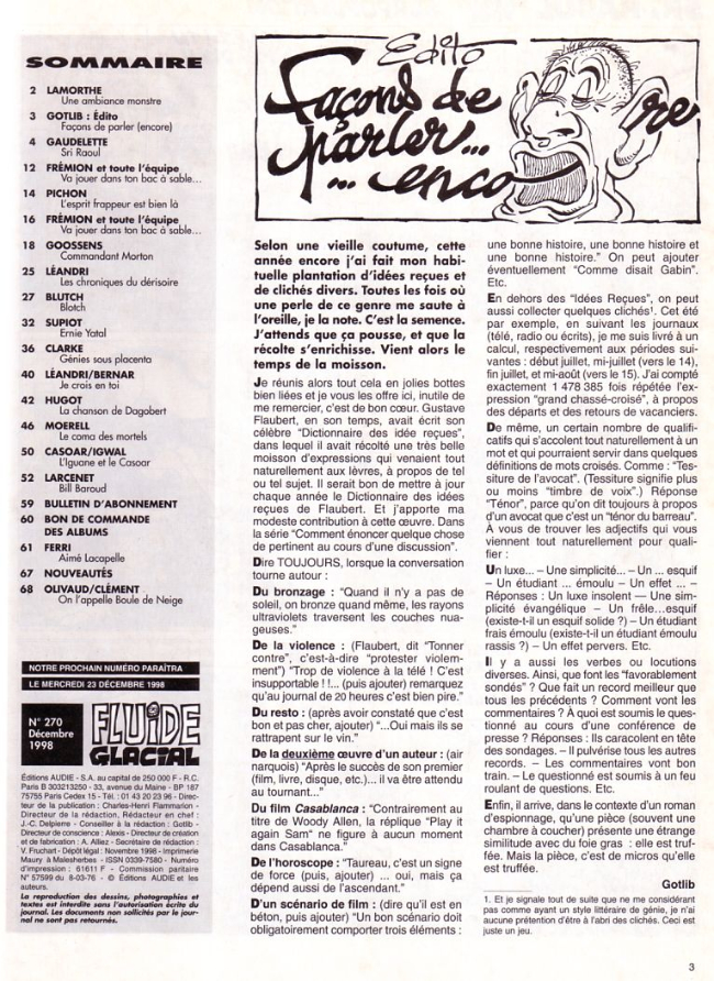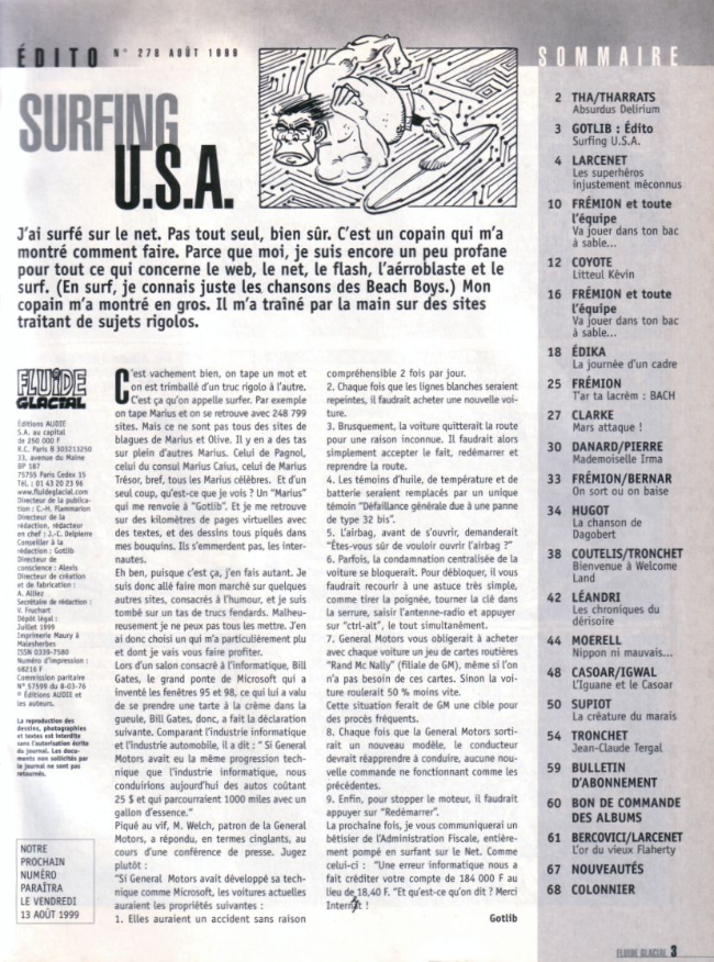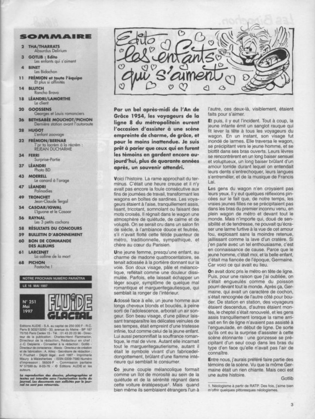 Sommaire : Couverture : Larcenet Editorial : Gotlib 4e de couverture : Gaudelette et Larcenet